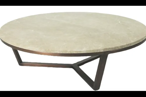 Salontafel Cosa van het merk BL Design is een toonbeeld van hedendaagse elegantie. Het ronde tafelblad in marmerlook straalt een serene luxe uit, perfect in balans gebracht door het geometrische onderstel in donkerbruin metaal. De slanke, V-vormige pootconstructie zorgt voor een luchtig silhouet dat verfijning toevoegt zonder te overheersen.