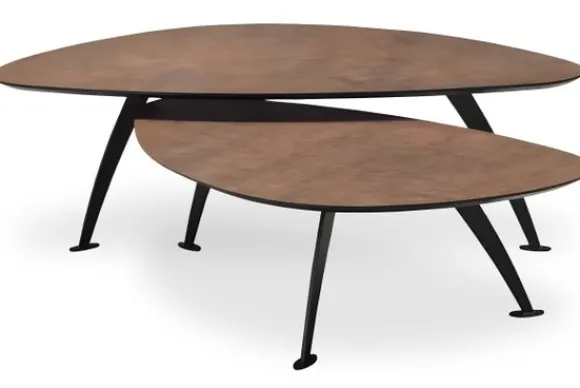 Salontafelset Bogota van het merk Every Table is een unieke tafel met een klassieke uitstraling met een kiezel vormig blad. Het blad van de tafel is gemaakt van HPL (geperst hout) met een bovenlaag van houtstructuur, marmerstructuur of een ander materiaalstructuur. Deze bovenlaag is ijzersterk en zorgt ervoor dat het blad kras-, slijt en stootvast is. Daarnaast is het eenvoudig te onderhouden.