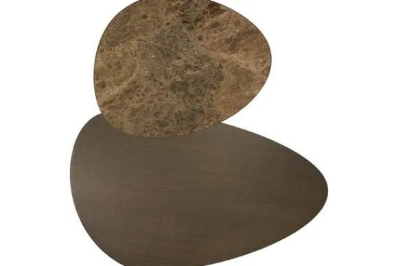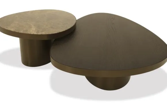 Salontafelset Foggia van het merk BL Design bestaat uit twee stijlvolle tafels met verschillende bladen: één in hout en één in marmer. Het houten blad is uitgevoerd in de kleur Veneer Oak Brown Onyx, terwijl het marmeren blad is uitgevoerd in de luxe tint Emperador Brown. De afmetingen van de afgebeelde set zijn (BxDxH) 130,5×80,5×30 cm voor het houten blad en 80,5x65x30 cm voor het marmeren blad.
