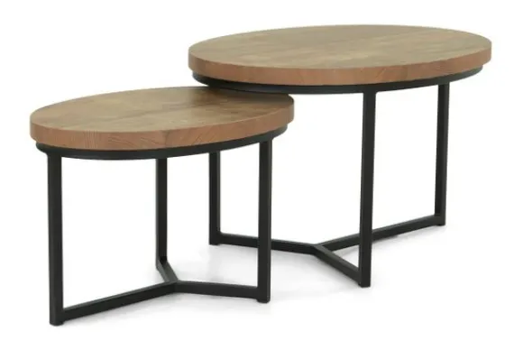 De grotere set bestaat uit twee ovale tafels van B86 x D67 x H50 cm en B71 x D52 x H43 cm.