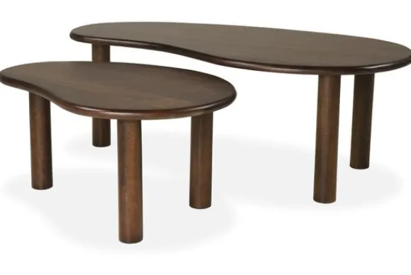 Salontafelset Nubi van het merk Livingfurn is set van twee bruine salontafels gemaakt van mangohout. Mangohout kun je herkennen aan de vele kleurschakeringen en ongelijkheden in het oppervlakte van het hout, waardoor geen enkel meubelstuk hetzelfde is. De kleuren in mangohout kunnen variëren van licht- tot donkerbruine tonen. Mangohout is een duurzame houtsoort. De salontafels hebben een unieke, organische vorm. De grote tafel heeft een afmeting van H39xB110xD60 cm. De kleine tafel heeft een afmeting van H35xB70xD50 cm.