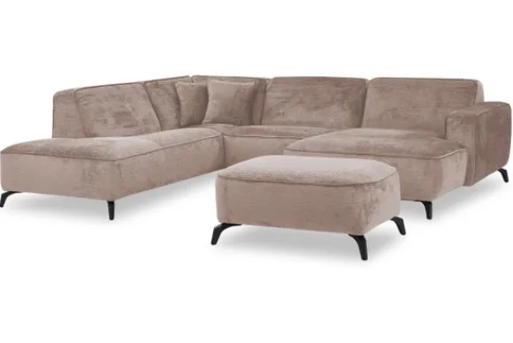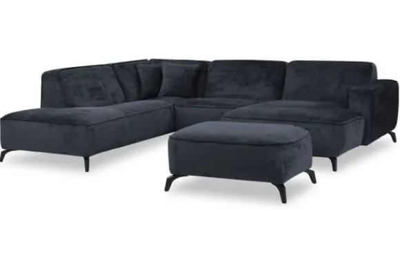 Standaard wordt bankstel Galeria geleverd exclusief sierkussens en met zwart metalen pootjes, chroomkleurige pootjes zijn optioneel. Deze bank wordt geleverd exclusief poef.