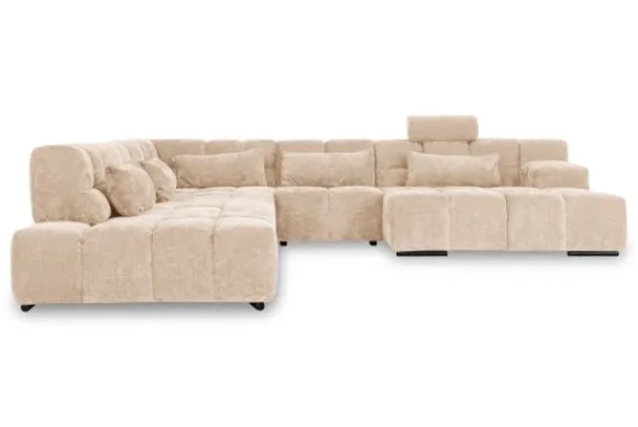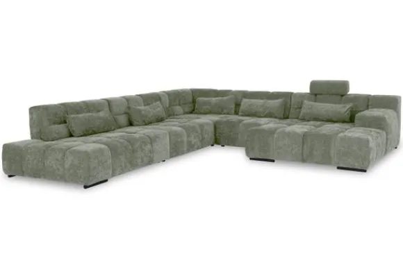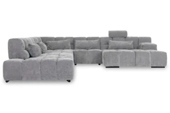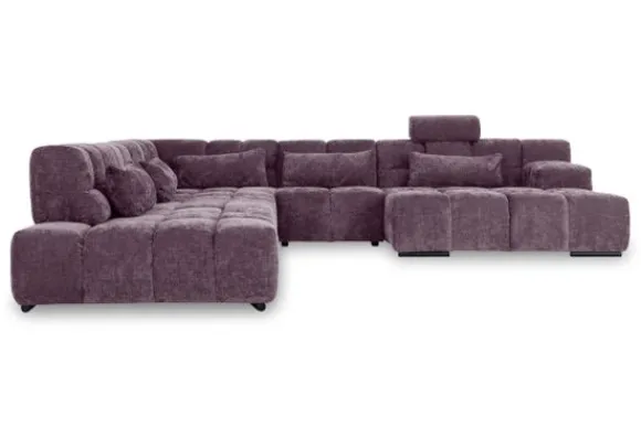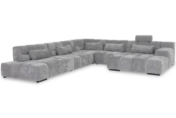 Dit bankstel is samen te stellen in vele afmetingen en verschillende opstellingen, of kies uit een van de standaard opstellingen. Ook kan je kiezen uit mat zwarte of chroom pootjes en zijn er bijpassende hoofdsteunen, sier- en lendekussens en poefjes beschikbaar. Deze worden uitgevoerd in dezelfde stof als de bank.