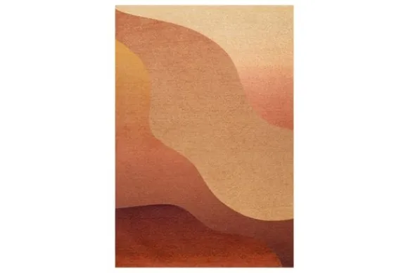 Vloerkleed Sahara 640 Cherry red van het merk Brinker heeft een warme en rustige uitstraling. Het rechthoekige vloerkleed sluit goed aan bij design, moderne en eclectische stijl interieurs met de sfeervolle kleuren en golvende vormen.