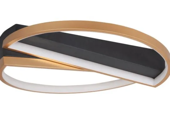 Plafondlamp Helios van het merk highlight is een moderne lamp. Deze lamp is gemaakt van metaal en heeft de kleur matzwart in combinatie met matgoud. In de twee metalen rondingen is een LED-strip verwerkt met een gelijkmatige, warme lichtverdeling. Deze lamp is ook verkrijgbaar met twee rechthoeken in plaats van twee halve cirkels.
