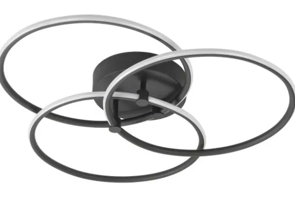 Plafondlamp Circles Zwart van het merk Highlight bestaat uit drie cirkels die elkaar kruisen. In de zwarte cirkels zit een LED-strip verwerkt met een gelijkmatige, warme lichtverdeling. De lamp heeft een schakelaar met drie standen, hiermee kun je de lichtsterkte van de lamp regelen. Deze plafondlamp is ook verkrijgbaar in de kleur zilver.