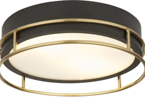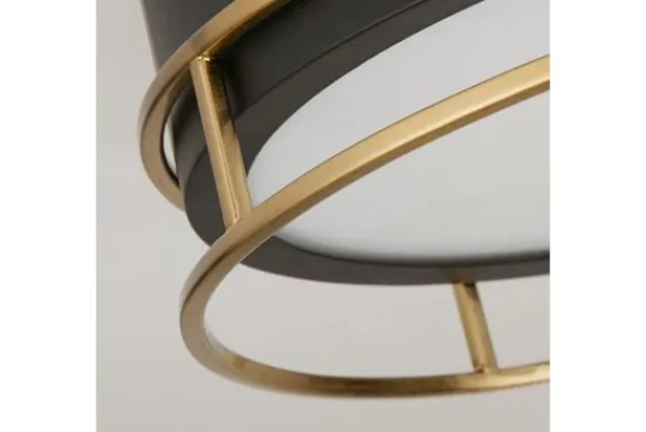 Plafondlamp Phoenix 62012-2PB van het merk Searchlight is een moderne zwart met gouden lamp die perfect is voor lage plafonds of kamers met minimale verticale ruimte. Deze lamp is in twee maten verkrijgbaar.