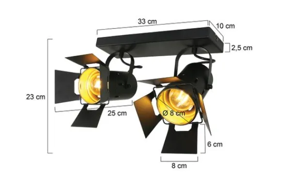 Plafondlamp 7997ZW Mexlite van het merk Steinhauer heeft een industriële uitstraling. De lamp is voorzien van een 2-spots E27 fitting en is geschikt voor lichtbronnen tot 40 Watt. De lamp is vervaardigd uit metaal met een zwarte poedercoating en een gouden binnenkant. Een handige bijkomstigheid is dat de lamp draai- en kantelbaar is. Door deze functie kan je speciefieke delen in de ruimte te verlichten. De lamp is dimbaar middels een externe dimmer en een dimbare lichtbron. Door de studiolamp uitstraling en de unieke spot is deze lamp een echte eyecatcher in huis.