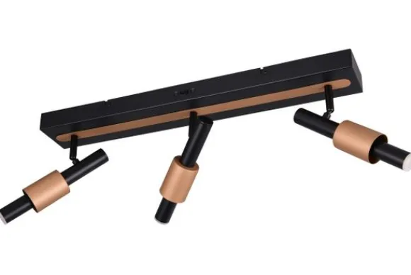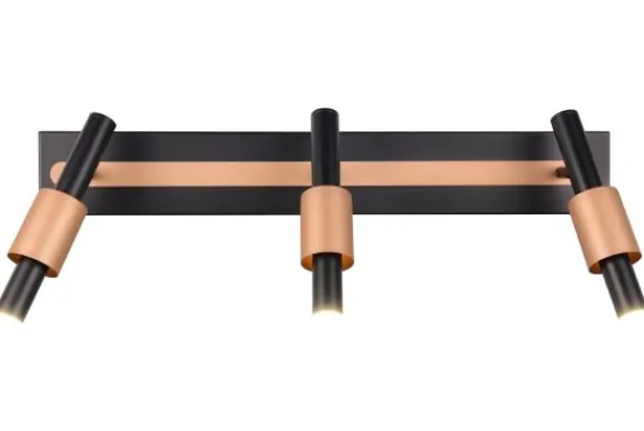 Plafondlamp Ikarus 855310332 van Trio Lighting is een moderne en speels vormgegeven lamp met drie verstelbare lichtspots. Het strakke ontwerp in mat zwart met bronzen accenten geeft de lamp een eigentijdse uitstraling die moeiteloos past in een modern, industrieel of design interieur.