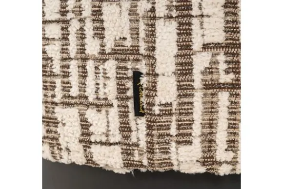 Poef Lexie 213297 Cream Dalia van het merk Richmond Interiors is een moderne poef met een luxueuze uitstraling. De grove structuurstof in wit en beige creëert een speels lijnenspel dat doet denken aan een abstract kunstwerk.