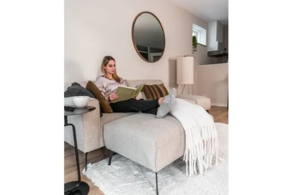 Poef Romi wordt standaard uitgevoerd met poten van 17 cm hoog, maar je kunt ook kiezen voor poten van 19 cm hoog. De hoogte van de poef is standaard 46 cm en wordt dan 48 cm.
