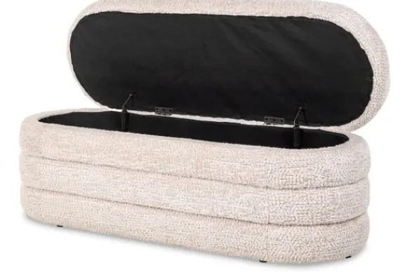 Onder de zachte zitting schuilt een handig opbergvak, ideaal voor sjaals, schoenen of andere accessoires. Zo combineert halbank Camille moeiteloos comfort, functionaliteit en esthetiek in één elegant geheel.