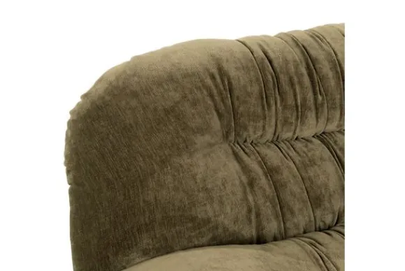 De royale zitting en rugleuning zijn rijkelijk gevuld en voorzien van zachte plooien die een speelse beweging in het ontwerp brengen. De bekleding in polyester voelt heerlijk zacht aan en geeft de bank een luxe en tijdloos karakter.