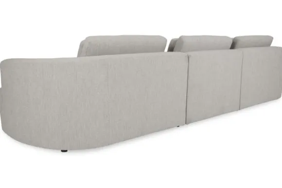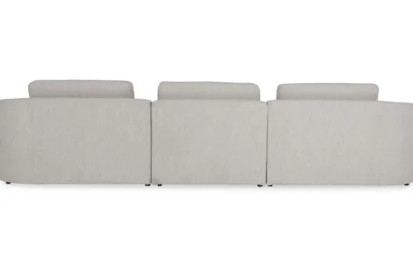 Daarnaast is de bank verkrijgbaar in verschillende afmetingen en opstellingen. De bank heeft een knusse uitstraling dankzij de ronde vormen en dubbele rugkussens. De armleuning loopt naadloos door in de rugleuning, dit geeft een moderne look. De zitting is gevuld met koudschuim wat voor een stevige zit zorgt. De rugkussens hebben een vulling van koudschuim met een bovenlaag van siliconenvezels, hierdoor zijn deze wat zachter.