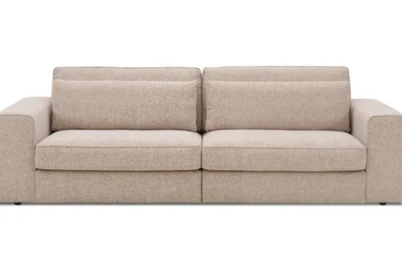 Bankstel Janique van het merk Grandelle is een ruime bank met een zachte, volle stoffering en een rustige uitstraling. De brede armleuningen en diepe zit zorgen voor comfort en een ontspannen zitervaring. De kussens die op de foto zijn afgebeeld worden standaard meegeleverd.