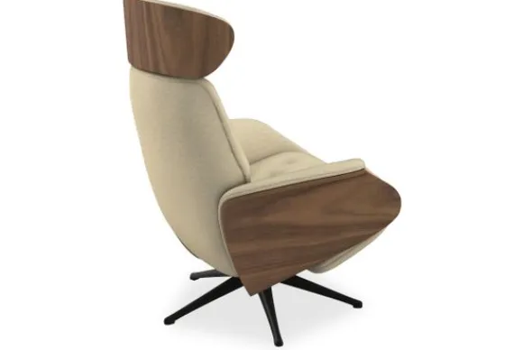 Deze relaxstoel wordt standaard uitgevoerd met een 2 motorig elektrisch relaxsysteem, een walnoot kleurige schaal en een zwarte stervoet.