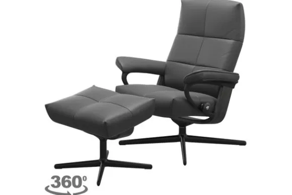 Relaxfauteuil David Cross van het merk Stressless is verkrijgbaar in alle kleuren. Tevens is de fauteuil leverbaar in stof en rundleder. Je kunt bij deze fauteuil kiezen uit diverse maten zoals Small, Medium en Large. Deze fauteuil heeft een Plus en Glide Systeem: Aan beide zijden van de fauteuil zit een knop waarmee je de weerstand van de stoel kan aanpassen naar eigen behoefte. Door de knoppen in tegengestelde richting te draaien stel je jouw ideale relaxpositie samen. Op die manier krijgt de nek en de onderrug goede onderstuening. Door de rugleuning naar voren te buigen activeer je de slaapfunctie. Op het moment dan je weer rechtop komt stelt de stoel zichzelf weer bij naar de normale stand.