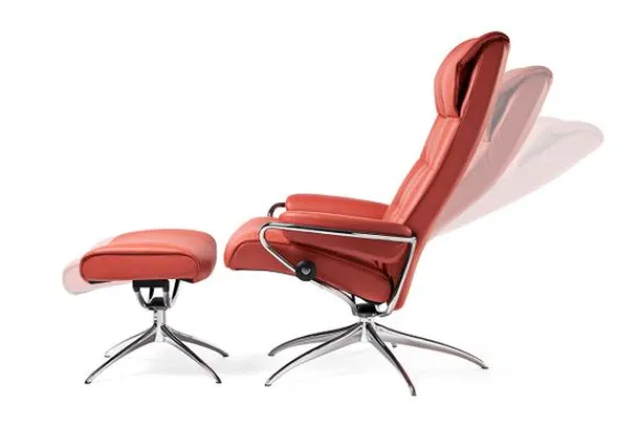 Relaxfauteuil London Highback van het merk Stressless is verkrijgbaar in alle kleuren. Tevens is de fauteuil leverbaar in stof en rundleder. Je kunt bij deze fauteuil kiezen uit diverse maten zoals Small, Medium en Large. Deze fauteuil heeft een Plus en Glide Systeem: Aan beide zijden van de fauteuil zit een knop waarmee je de weerstand van de stoel kan aanpassen naar eigen behoefte. Door de knoppen in tegengestelde richting te draaien stel je jouw ideale relaxpositie samen. Op die manier krijgt de nek en de onderrug goede ondersteuning. Door de rugleuning naar voren te buigen activeer je de slaapfunctie. Op het moment dan je weer rechtop komt stelt de stoel zichzelf weer bij naar de normale stand.