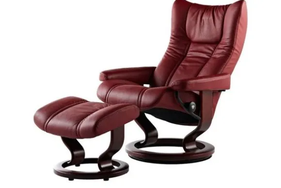 Relaxfauteuil Wing Classic van het merk Stressless is verkrijgbaar in meer dan 150 kleuren. Tevens is de fauteuil leverbaar in stof en rundleder. Je kunt bij deze fauteuil kiezen uit diverse maten zoals Small, Medium en Large. Deze fauteuil heeft een Plus en Glide Systeem: Aan beide zijden van de fauteuil zit een knop waarmee je de weerstand van de stoel kan aanpassen naar eigen behoefte. Door de knoppen in tegengestelde richting te draaien stel je jouw ideale relaxpositie samen. Op die manier krijgt de nek en de onderrug goede ondersteuning. Door de rugleuning naar voren te buigen activeer je de slaapfunctie. Op het moment dan je weer rechtop komt stelt de stoel zichzelf weer bij naar de normale stand.