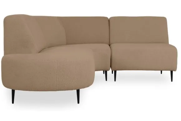 Hoekbank Payton van het merk Kenzo is een verfijnde en stijlvolle toevoeging aan elk interieur, met een uniek design dat wordt gekenmerkt door ronde, organische vormen. De rug- en armleuningen vloeien moeiteloos in elkaar over, wat zorgt voor een harmonieus en modern geheel. Een comfortabele zit wordt gegarandeerd door de hoogwaardige nosag vering, afgedekt met polyamide, en een vulling van koudschuim HR38, afgewerkt met een zachte laag dacron.