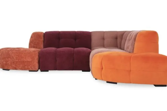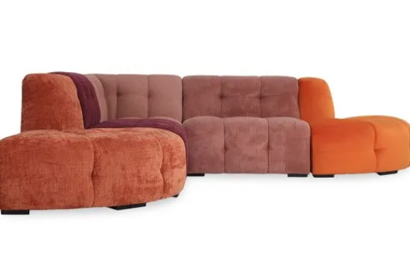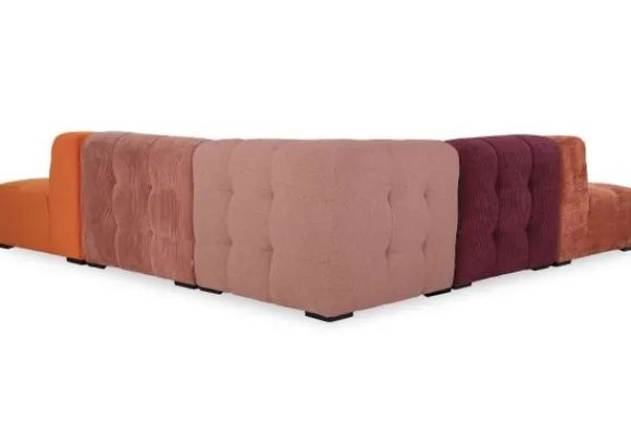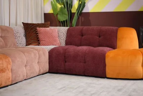 Je kunt kiezen uit verschillende materialen, waaronder rundleder en stoffen als velvet en boucle. Daarnaast is de bank verkrijgbaar in een breed scala aan kleuren. Je kan bij deze bank kiezen om alle elementen in dezelfde kleur te laten stofferen, of juist in verschillende kleuren.