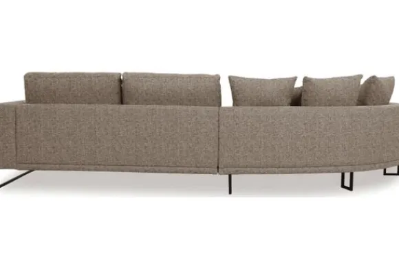 Loungebank Dordoni II van het merk Be Inspired is verkrijgbaar in alle kleuren en in verschillende materiaalsoorten zoals ribstof, teddy en velvet. Je kunt kiezen uit diverse afmetingen. De Dordoni II bank wordt standaard uitgevoerd met alle sierkussens en lendekussens die ook op de foto te zien zijn. De rugkussens daar achter zijn lekker hoog, deze combinatie zorgt voor een goede ondersteuning van de rug. Alle rugkussens zitten los en zijn omkeerbaar, de zitkussens zitten vast met klittenband. Het unieke aan de Dordoni II is het ronde loungegedeelte. Je kunt hier lekker wegkruipen tussen alle sierkussens. Deze bank oogt ruimtelijk door de hoge metalen sledepoten.