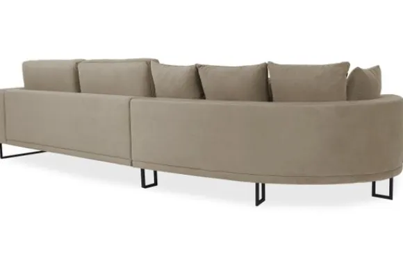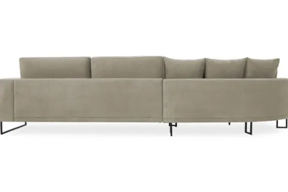 Loungebank Dordoni II van het merk Be Inspired is verkrijgbaar in alle kleuren en in materiaalsoorten zoals ribstof, teddy en velvet. De Dordoni II bank wordt standaard uitgevoerd met alle sierkussens en lendekussens die ook op de foto te zien zijn. De rugkussens daarachter zijn lekker hoog, deze combinatie zorgt voor een goede ondersteuning van de rug. Alle rugkussens zitten los en zijn omkeerbaar, de zitkussens zitten vast met klittenband. Het unieke aan de Dordoni II is het ronde loungegedeelte. Je kunt hier lekker wegkruipen tussen alle sierkussens. Deze bank oogt ruimtelijk door de hoge metalen sledepoten.
