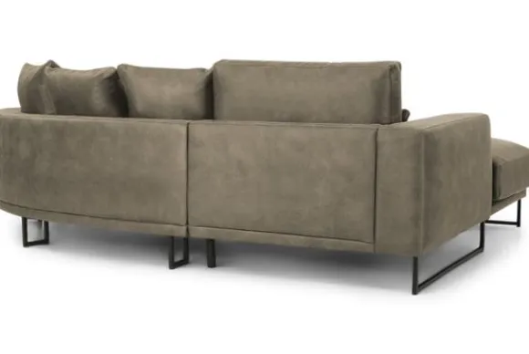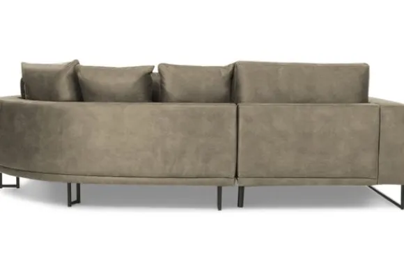 Loungebank Dordoni II van het merk Be Inspired is verkrijgbaar in alle kleuren en in materiaalsoorten zoals ribstof, teddy en velvet. De Dordoni II bank wordt standaard uitgevoerd met alle sierkussens en lendekussens die ook op de foto te zien zijn. De rugkussens daar achter zijn lekker hoog, deze combinatie zorgt voor een goede ondersteuning van de rug. Alle rugkussens zitten los en zijn omkeerbaar, de zitkussens zitten vast met klittenband. Het unieke aan de Dordoni II is het ronde loungegedeelte. Je kunt hier lekker wegkruipen tussen alle sierkussens. Deze bank oogt ruimtelijk door de hoge metalen sledepoten.