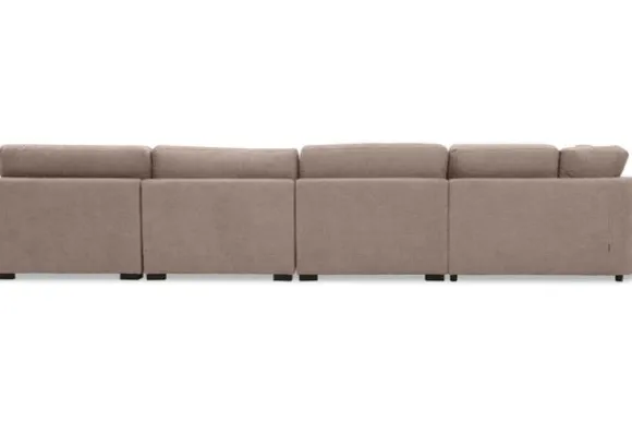 Met een uitgebreide keuze aan zitelementen stel je moeiteloos jouw ideale opstelling samen. Voor wie gemak zoekt, zijn er ook diverse standaardopstellingen beschikbaar. Ook kan je kiezen voor rechte rugkussens voor een moderne, strakke look of T-vormige kussens die sierlijk over de armleuning vallen en de bank een nonchalante, uitnodigende uitstraling geven. Daarnaast zijn er hockers beschikbaar in verschillende afmetingen, perfect als extra zitplek of voetensteun. De optionele verplaatsbare hoofdsteun biedt extra ondersteuning waar nodig.