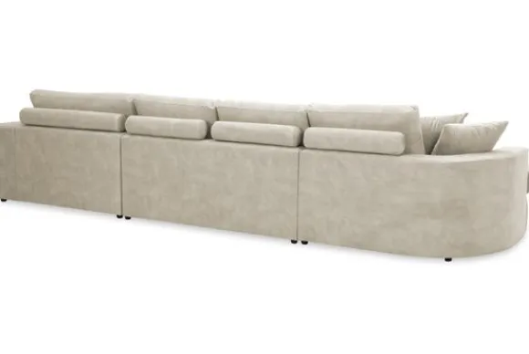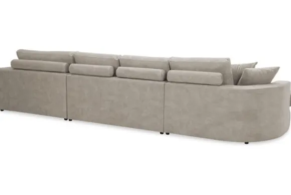 Bankstel Fenton van het merk Urban Design is een moderne bank met royale rugkussens die ondersteund worden door een rol aan de achterzijde, wat ervoor zorgt dat ze netjes op hun plek blijven.