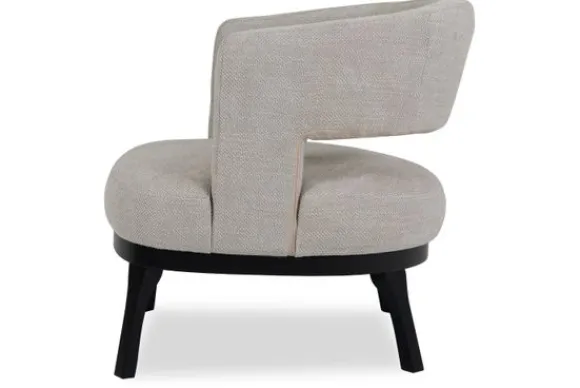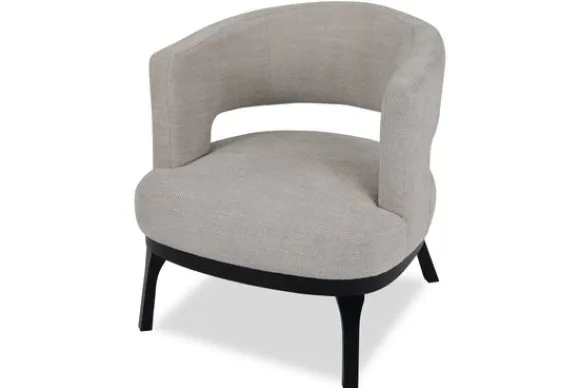 Fauteuil Lindos van het merk Caggia is beschikbaar in alle kleuren en verschillende materiaalsoorten zoals stof, velvet en rundleder. Deze fauteuil heeft een open uitstraling dankzij de opening in de rugleuning en de hoge poten. De poten zijn gemaakt van hout in de kleur zwart.