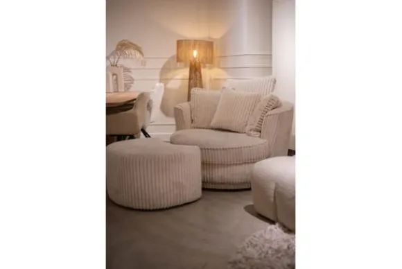 Standaard is fauteuil Annette voorzien van een elegante geknepen naad en een vast onderstel. Voor extra flexibiliteit kun je onder het kopje “Stel jouw fauteuil samen” kiezen voor een draaibaar onderstel, zodat je jezelf moeiteloos in elke richting kunt draaien.