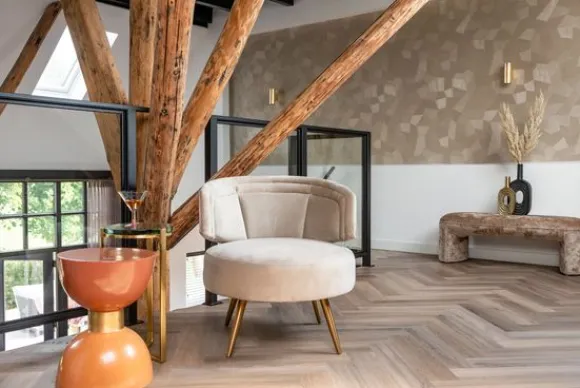Fauteuil Hazel 211049 Khaki Velvet van het merk Richmond Interiors is gestoffeerd met Quartz khaki 903. Velvet is makkelijk te reinigen, slijtvast en goed bestendig tegen bijvoorbeeld nagels van huisdieren. Verder heeft deze stof een mooie vleug, wat zorgt voor een chique en hippe uitstraling. In combinatie met het messing onderstel heeft deze fauteuil een luxueuze uitstraling. De fauteuil heeft een ronde rugleuning die doorloopt in armleuningen, dit zorgt voor een comfortabele zit.