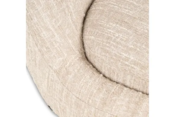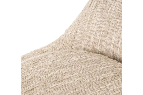 Dankzij de brede zitting en het losse kussen zit deze fauteuil heerlijk comfortabel. De beige bekleding voelt zacht aan en heeft een speelse textuur die zorgt voor een gezellige sfeer in huis.
