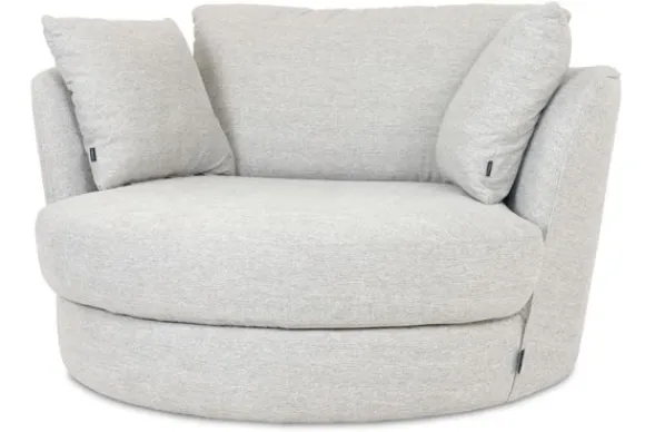Draaifauteuil Estelle van het merk Domicil Exclusive is verkrijgbaar in alle kleuren en in materiaalsoorten als stof, velvet en rundleder. De rugleuning loopt rondom, zodat je voldoende ondersteuning hebt. Deze stoel wordt geleverd inclusief de sierkussens en meegekleurde bies. Fauteuil Estelle is 360 graden draaibaar.