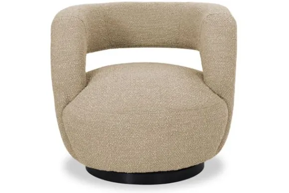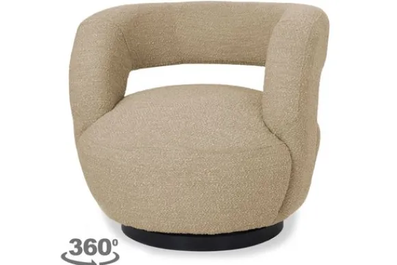 Draaifauteuil Sharon zand Spark 95797 van het merk Eleonora is beschikbaar in verschillende kleuren. De stoel is bekleed met een zachte teddystof. Deze fauteuil heeft ronde vormen, de rugleuning loopt rondom de zitting door in de armleuningen. De stoel staat op een gecoat metalen onderstel waardoor deze stoel draaibaar is.