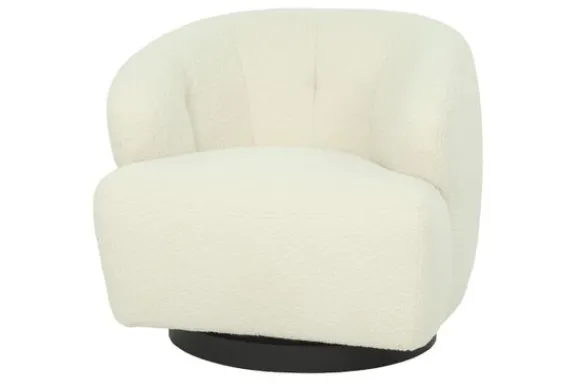 Draaifauteuil Brenda van het merk Living Square is beschikbaar in alle kleuren en in verschillende materiaalsoorten zoals stof, teddy en rundleder. Deze stoel heeft een rond gevormde rugleuning met stiksels. Het metalen onderstel zorgt ervoor dat de fauteuil draaibaar is.