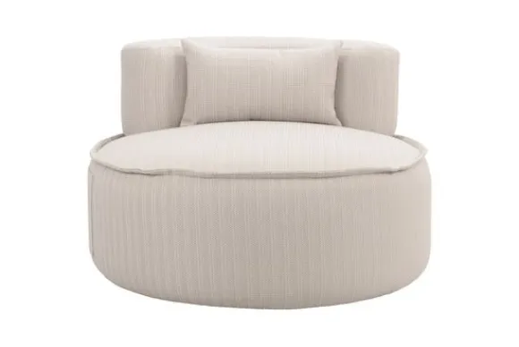 Draaifauteuil Nammos 213203 van het merk Richmond Interiors is een verfijnd designstuk dat comfort en functionaliteit combineert met een moderne uitstraling. De ronde, uitnodigende vorm en de zachte beige stoffering met een subtiel geweven textuur stralen tijdloze elegantie uit. De stoel is volledig 360 graden draaibaar, waardoor hij zowel praktisch als speels is. De hoogwaardige stoffering en stevige draaifunctie maken de Nammos niet alleen een stijlvolle toevoeging, maar ook een praktische keuze voor een lounge. Met zijn uitnodigende ontwerp en veelzijdige functionaliteit brengt de stoel een vleugje modern comfort in elke ruimte. Aan de zijkant bevindt zich een vak waar je bijvoorbeeld de bijgeleverde beschermhoes of een tijdschrift in kwijt kunt.