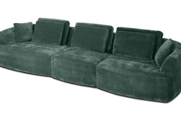 Daarnaast is de bank verkrijgbaar in verschillende afmetingen en opstellingen. De bank heeft een knusse uitstraling dankzij de ronde vormen en dubbele rugkussens. De armleuning loopt naadloos door in de rugleuning, dit geeft een moderne look. De zitting is gevuld met koudschuim wat voor een stevige zit zorgt. De rugkussens hebben een vulling van koudschuim met een bovenlaag van siliconenvezels, hierdoor zijn deze wat zachter.