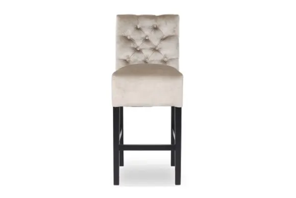 Barkruk Allard van het merk Vie Chic is beschikbaar in alle kleuren en in verschillende materiaalsoorten zoals stof, velvet en microvezel. Je kunt kiezen uit verschillende pootkleuren, hoogtes en kloppers. Wanneer je kiest voor de barkuk van 105 cm hoog, dan is de zithoogte 70 cm hoog. Wanneer je kiest voor de barkruk van 115 cm hoog, dan is de zithoogte 80 cm. De Allard heeft een luxe uitstraling door de gecapitonneerde rugleuning en dikke zitting, daarnaast zit er een voetensteun tussen de poten.
