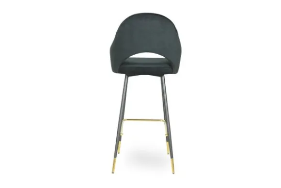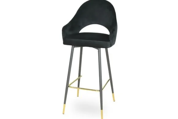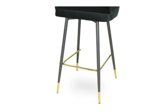 Deze barkurk wordt standaard uitgevoerd met metalen poten in de kleur zwart en gouden details.
