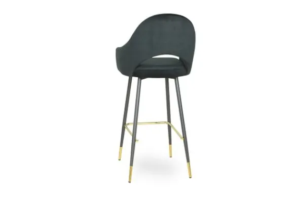 Barkruk Bagneux van het merk Vie Chic is beschikbaar in alle kleuren en in verschillende materiaalsoorten zoals stof, velvet en microvezel. Je kunt kiezen uit verschillende pootkleuren en hoogtes. Een goud detail onderaan de poten is optioneel. Wanneer je kiest voor de barkuk van 98 cm hoog, dan is de zithoogte 66 cm hoog. Wanneer je kiest voor de barkruk van 108 cm hoog, dan is de zithoogte 77 cm. De Bagneux heeft een ronde rugleuning, die doorloopt in armleuningen. Onderin de rugleuning zit een opening. Tussen de poten zit een voetensteun.