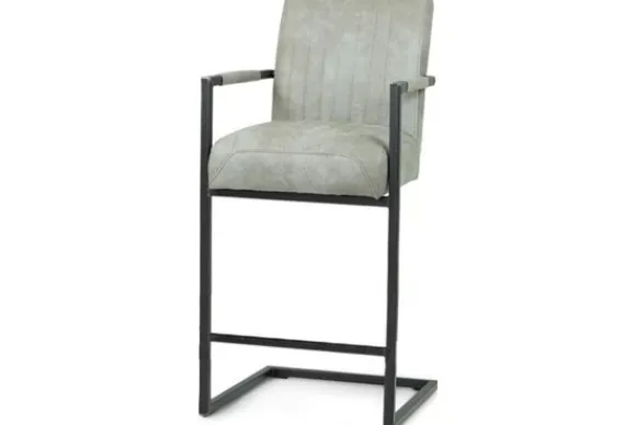 Deze barkruk wordt standaard uitgevoerd met metalen poten in de kleur zwart die zijn voorzien van een voetensteun. Daarnaast heeft de kruk verticale stiksels in de rugleuning en zitting en is deze voorzien van armleuningen.