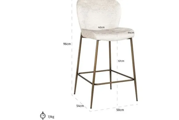 Barstoel Darby 211842 van het merk Richmond Interiors is gestoffeerd met de stof ‘Fusion Cream 02’ en heeft metalen zwarte poten. Deze stoel is ook als barstoel verkrijgbaar. Het verschil tussen een counterstoel en een barstoel is dat een counterstoel een lagere zitting heeft. Lees meer over hoe jij de juiste hoogte voor jouw counterstoel kiest.