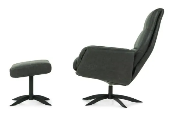 De draaivoet is verkrijgbaar in de kleur zwart of chroom. Deze fauteuil wordt standaard geleverd exclusief de poef, deze is bij te bestellen onder ”extra opties”.