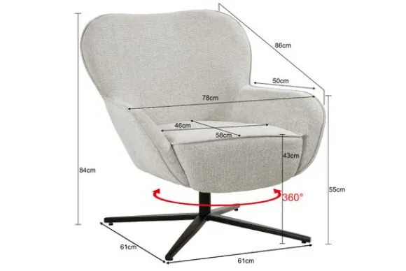 De stevige metalen sterpoot in zwart is 360 graden draaibaar voor extra gemak. Draaifauteuil Sven is verkrijgbaar in twee kleuren, Toffee en Bisque Oasis.