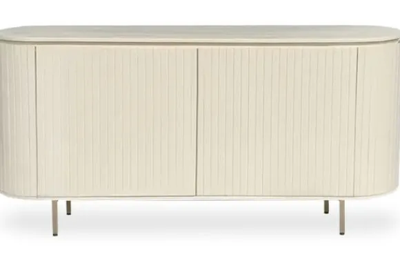 Dressoir Patou van het merk Livingfurn is gemaakt van duurzaam mangohout, afgewerkt in een lichte kleur op beige pootjes. De elegante vorm met lattenpatroon en de greeploze deuren creëren een stijlvol en chique geheel. Upgrade je interieur met de allure van de Patou serie voor een tijdloze uitstraling. Mangohout kun je herkennen aan de vele kleurschakeringen en ongelijkheden in het oppervlakte van het hout, waardoor geen enkel meubelstuk hetzelfde is. Mangohout is een duurzame houtsoort.