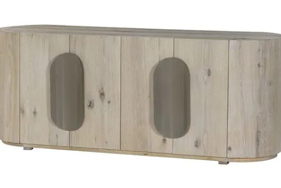 Dressoir Allure VF 0035 van het merk Tower Living in de kleur White Wash is een eigentijds meubel dat direct sfeer en licht in de ruimte brengt. De afgeronde vormen en zachte lijnen zorgen voor een unieke uitstraling, terwijl de opvallende handgrepen het meubel een uniek karakter geven.