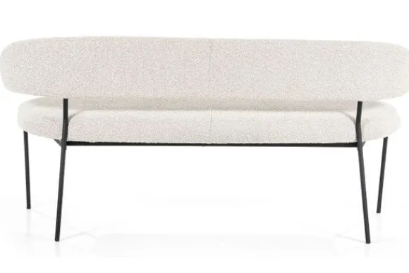 Eetkamerbank Luka beige 95795 van het merk Eleonora is beschikbaar in verschillende kleuren. Deze eetbank is bekleed met de polyester stof Copenhagen beige 901 en heeft metalen poten met een gecoaten afwerking. Deze eetkamerbank oogt ruimtelijk door de opening tussen de zitting en de rugleuning. De rugleuning loopt rond af langs de zijkanten.