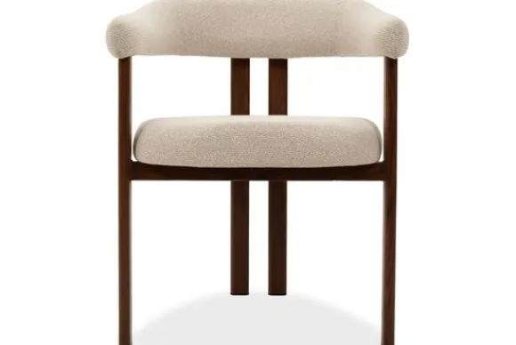 Dankzij de gebogen rug en armleuningen biedt eetkamerstoel Takumi een ontspannen zitcomfort, ideaal voor lange diners of gezellige avonden aan tafel.